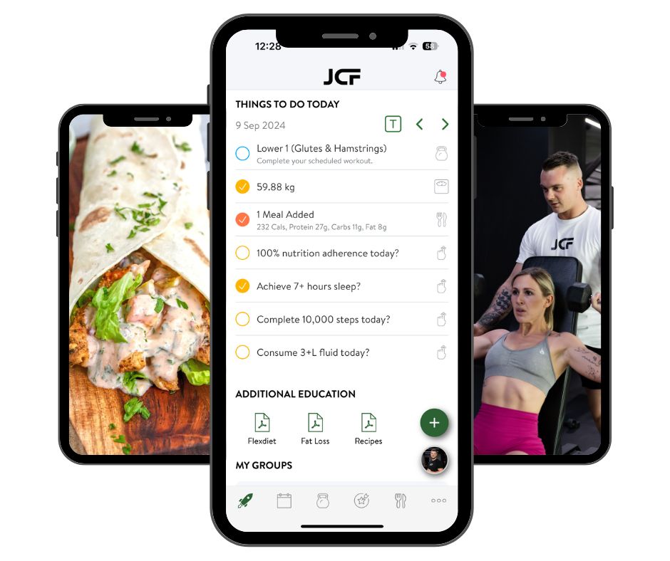 With the JCF app, you’ll have everything you need to crush your fitness goals right at your fingertips – from personalised workouts and nutrition plans to progress tracking and direct support from your coach.